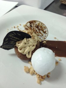Bizcocho chocolate y almendras, espaguetis de turrón, transparencia de pistacho, helado de cítricos y tierra de cambrel Me gusta Cargando...